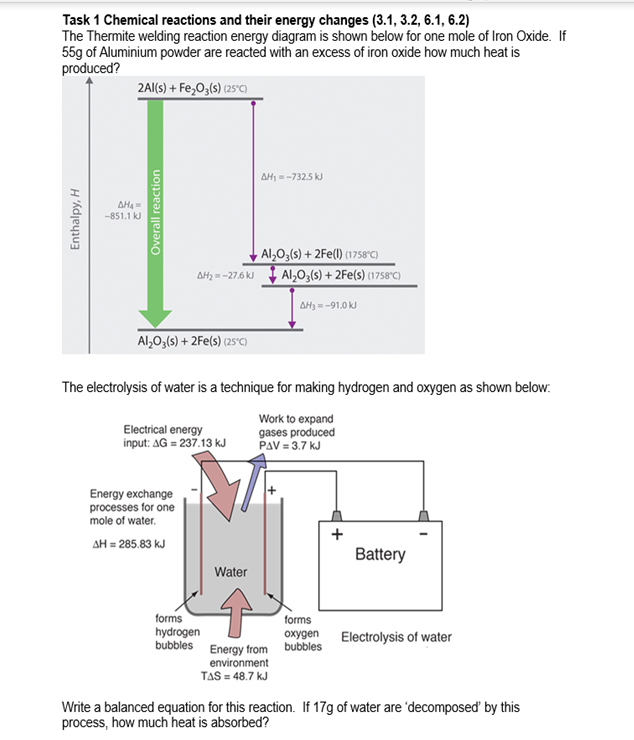Solved Task 1 Chemical reactions and their energy changes | Chegg.com
