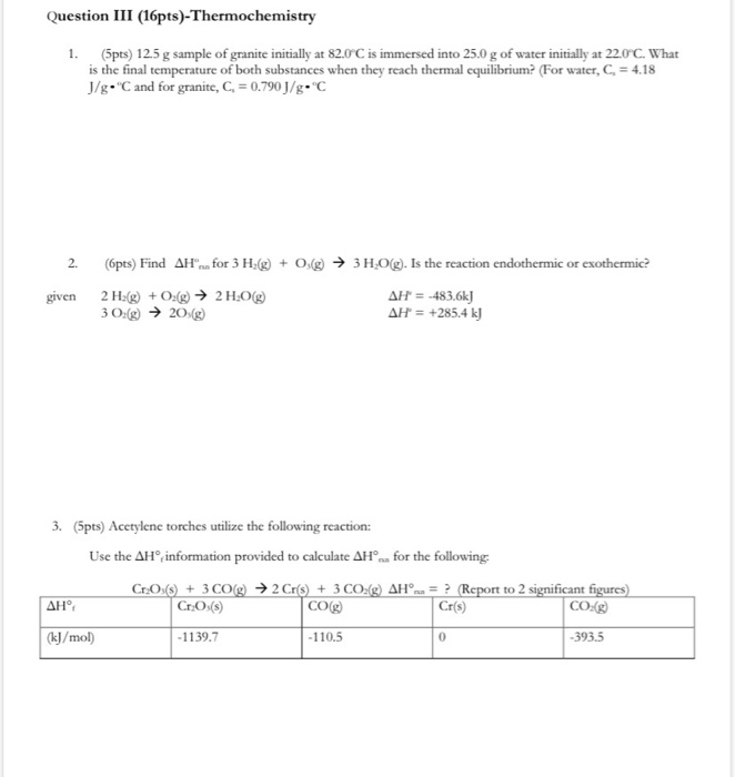 Solved Question III (16pts)-Thermochemistry 1. (5pts) 12.5 g | Chegg.com