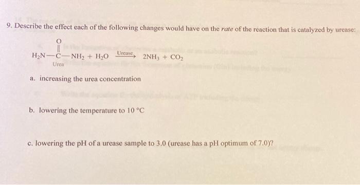 9. The enzyme urease catalyzes the following reaction | Chegg.com