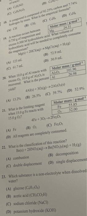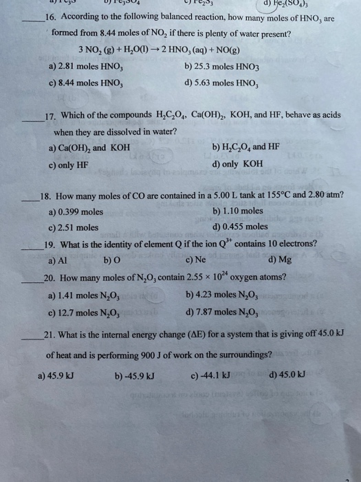 Chemistry Exam Questions | PDF | Urea | Chemical Reactions