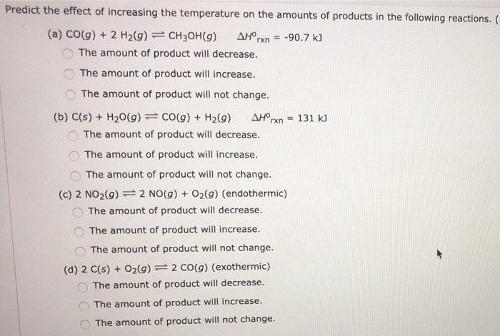 Solved Predict the effect of increasing the temperature on | Chegg.com