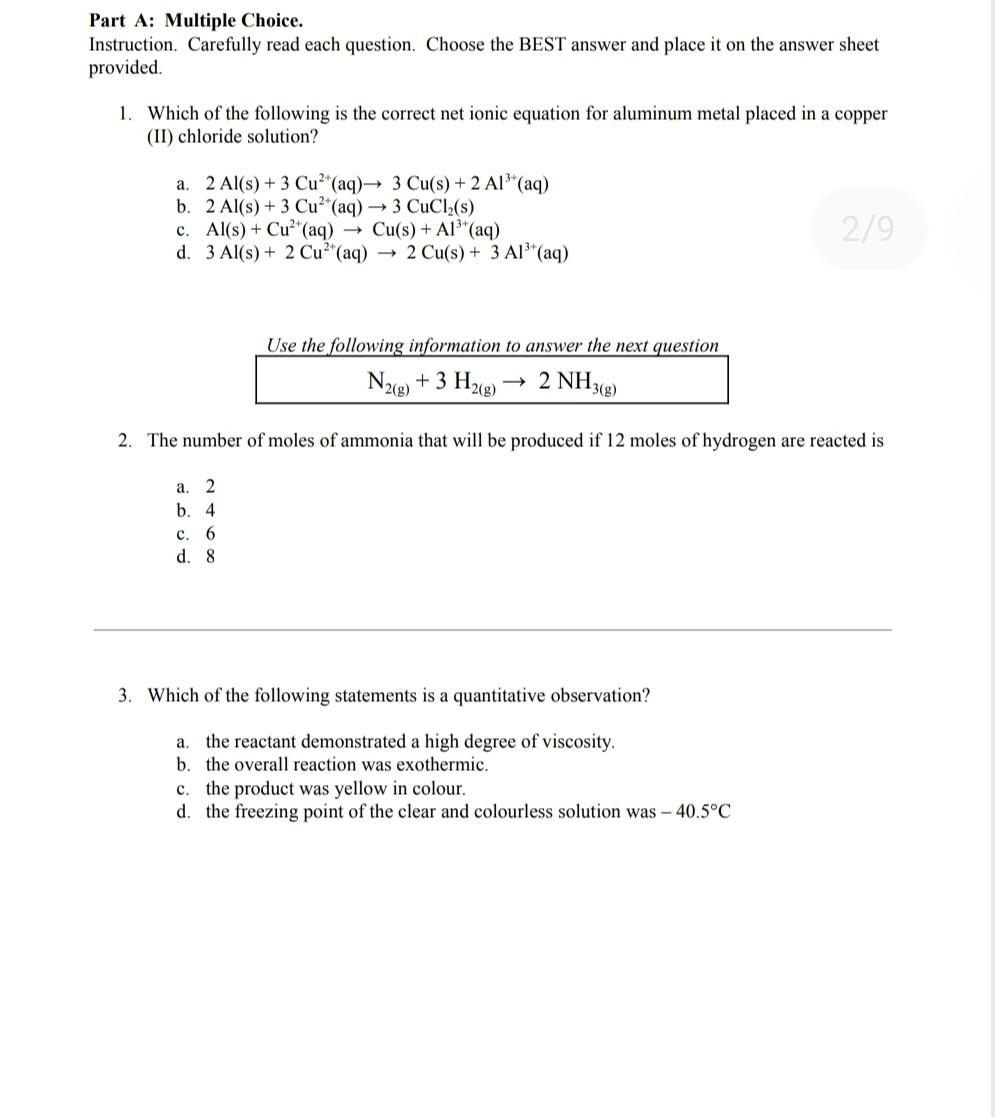 Solved Part A: Multiple Choice. Instruction. Carefully read | Chegg.com