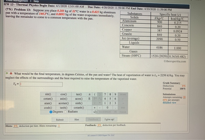 Solved Lluss Management Help HW 13 - Thermal Physics Begin | Chegg.com
