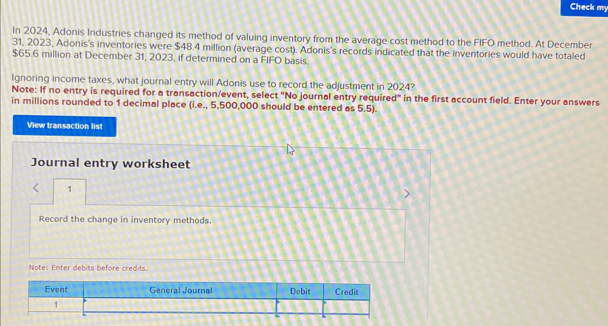 Solved In 2024, Adonis Industries changed its method of | Chegg.com
