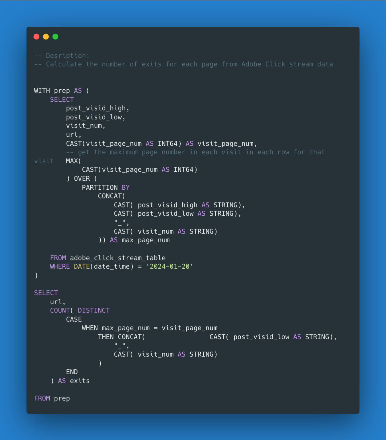 SQL Query for exits on Adobe Analytics click stream data | MarquinSmith