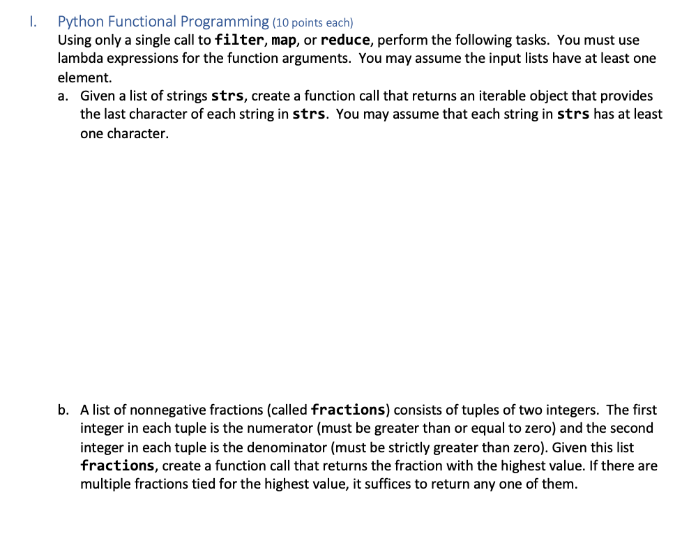 Solved 1. Python Functional Programming (10 points each) | Chegg.com