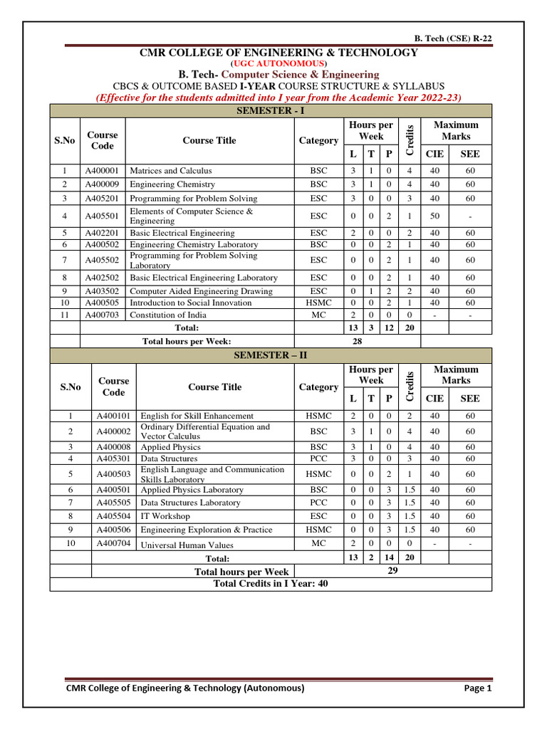 R22 B.tech CSE Syllabus Upto IV Sem Ver5 | PDF | Integral | Matrix ...