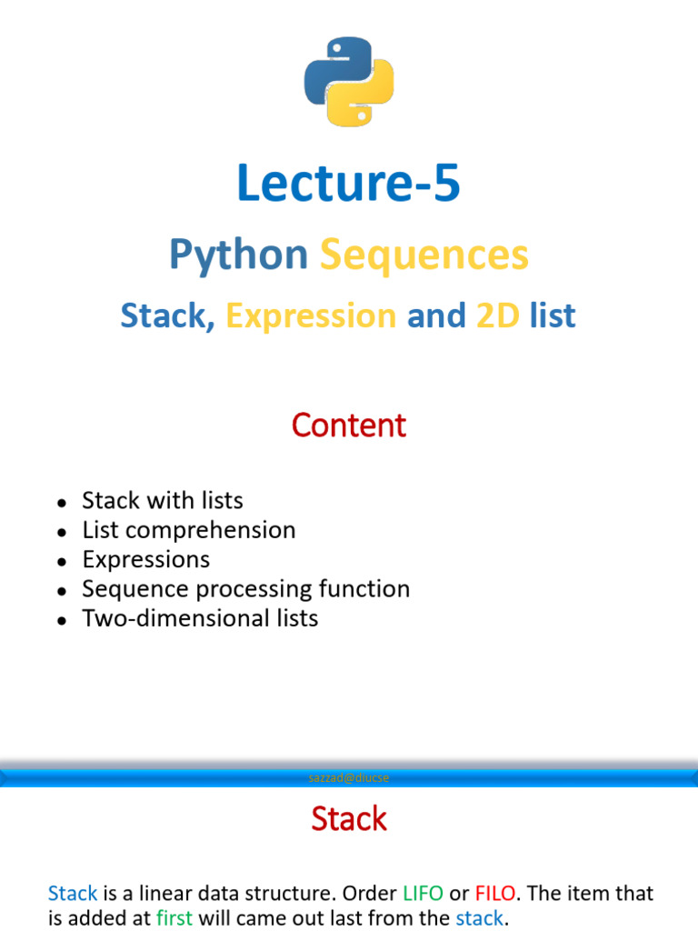 Lecture 5 - Python Sequences (Stack, Expression and 2D list) | PDF ...