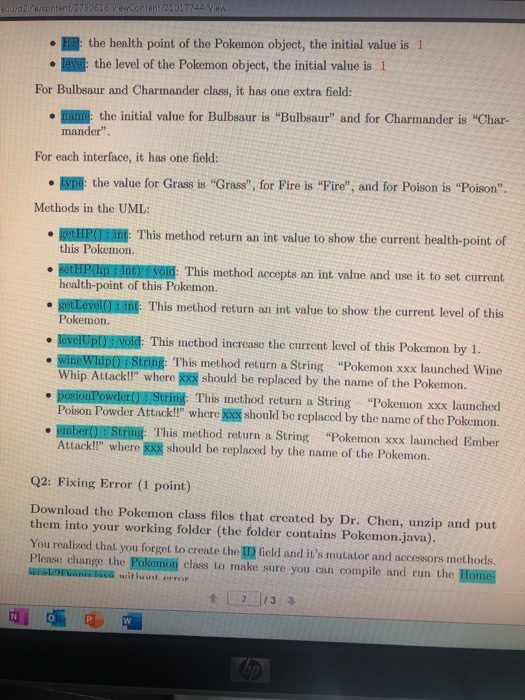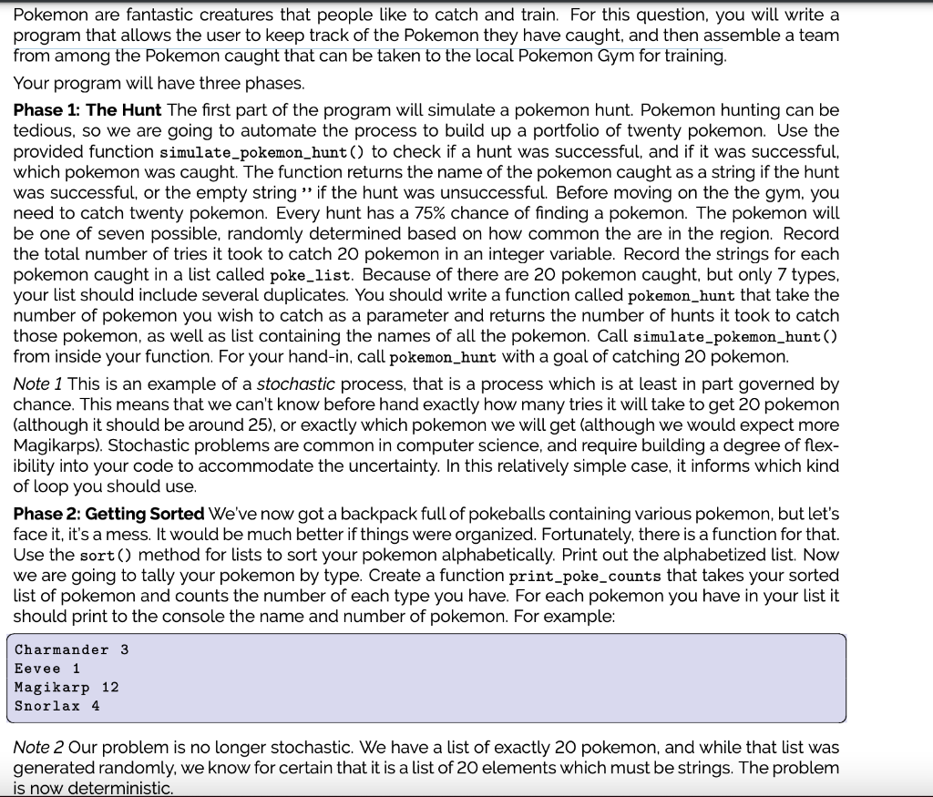 Solved This homework builds on your previous Pokémon | Chegg.com