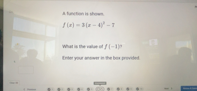 Solved: A function is shown. f(x)=3(x-4)^2-7 What is the value of f(-1 ...
