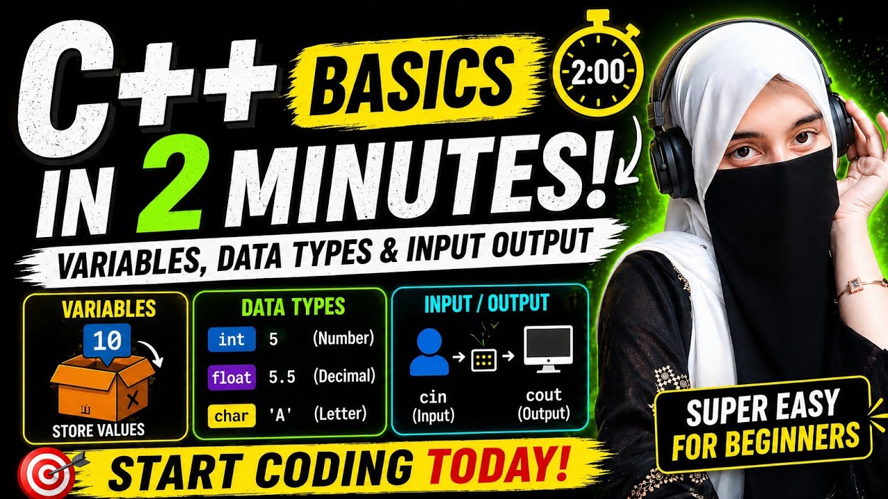 Learn C++ Basics in 2 Minutes 😱 | Variables, Data Types & Input Output ...