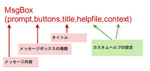 Based on this image's title: “Excel VBAのMsgBox関数:メッセージボックスの表示とオプション設定方法 ※”