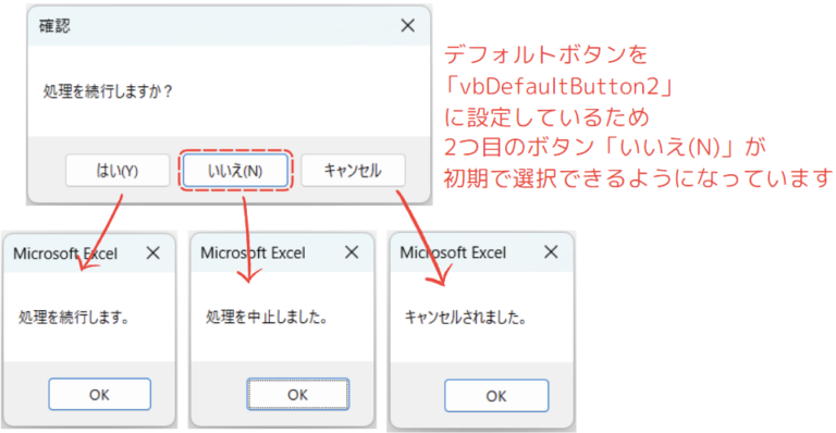 Msgbox関数 - メッセージを表示し、ボタンの選択に応じて処理を行う - Excel VBA