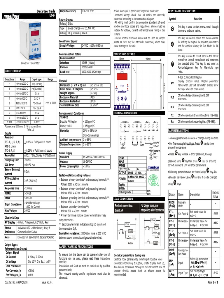 UT94 - Quick - User - Guide Masibus Isolator | PDF | Relay | Menu ...