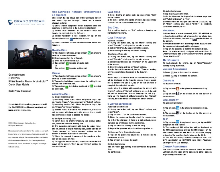 GXV3275 Quick User Guide - 0 | PDF