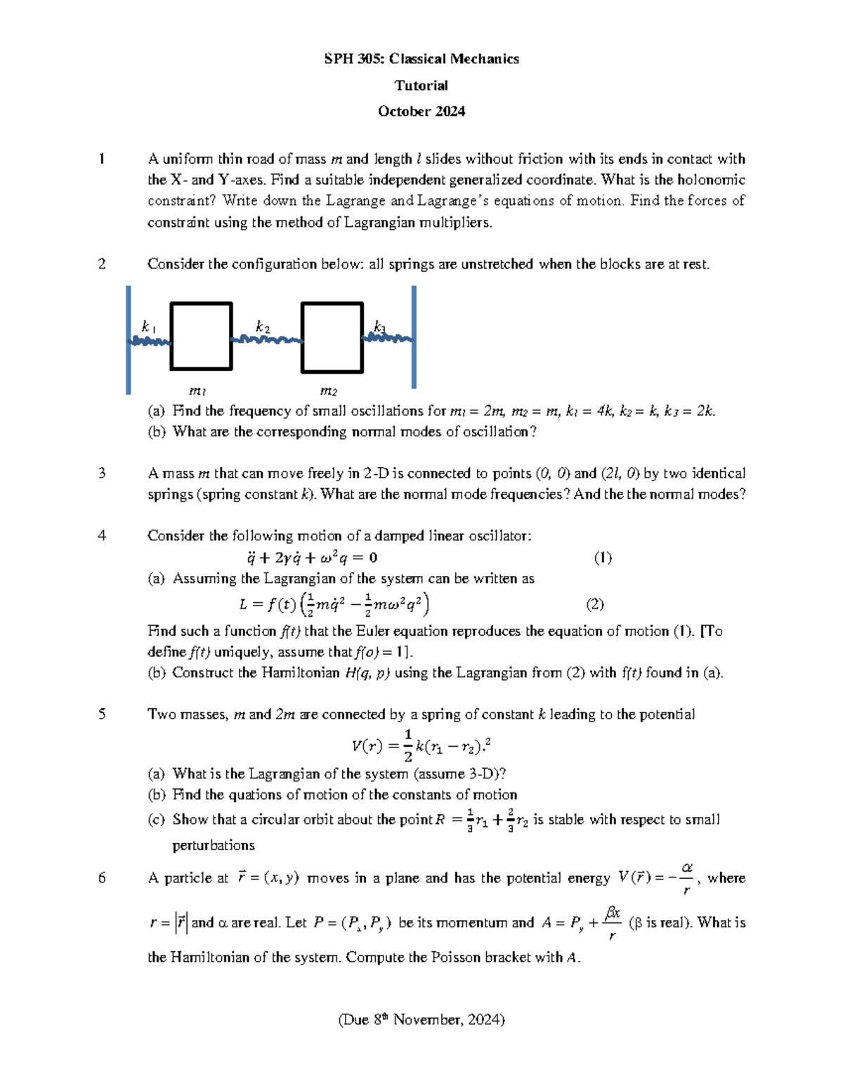 SPH 305-Tutorial-Oct-2024 - SPH 305: Classical Mechanics Tutorial ...