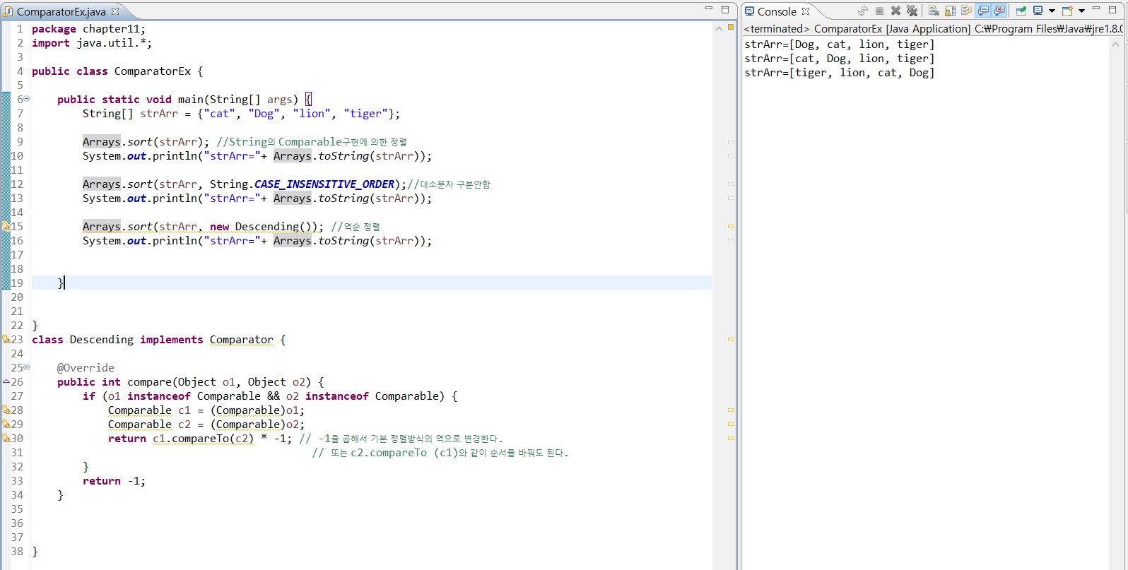 Comparator를 이용한 문자열 배열 정렬하기