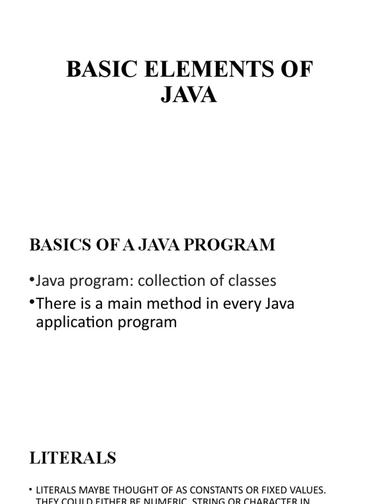4 Basic Elements of Java - BASIC ELEMENTS OF JAVA Java Programming ...