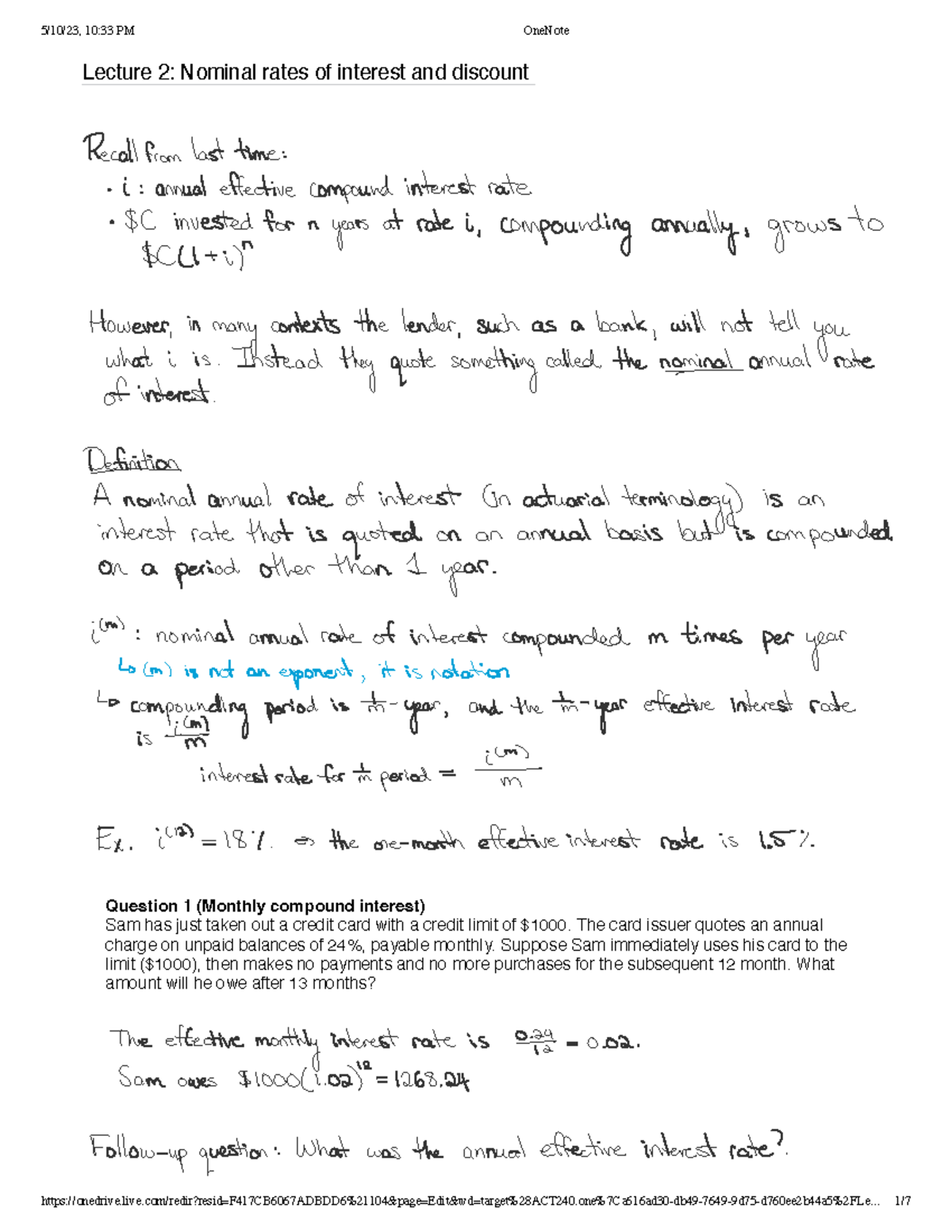 ACT240 Lecture 2 notes - Lecture 2: Nominal rates of interest and ...