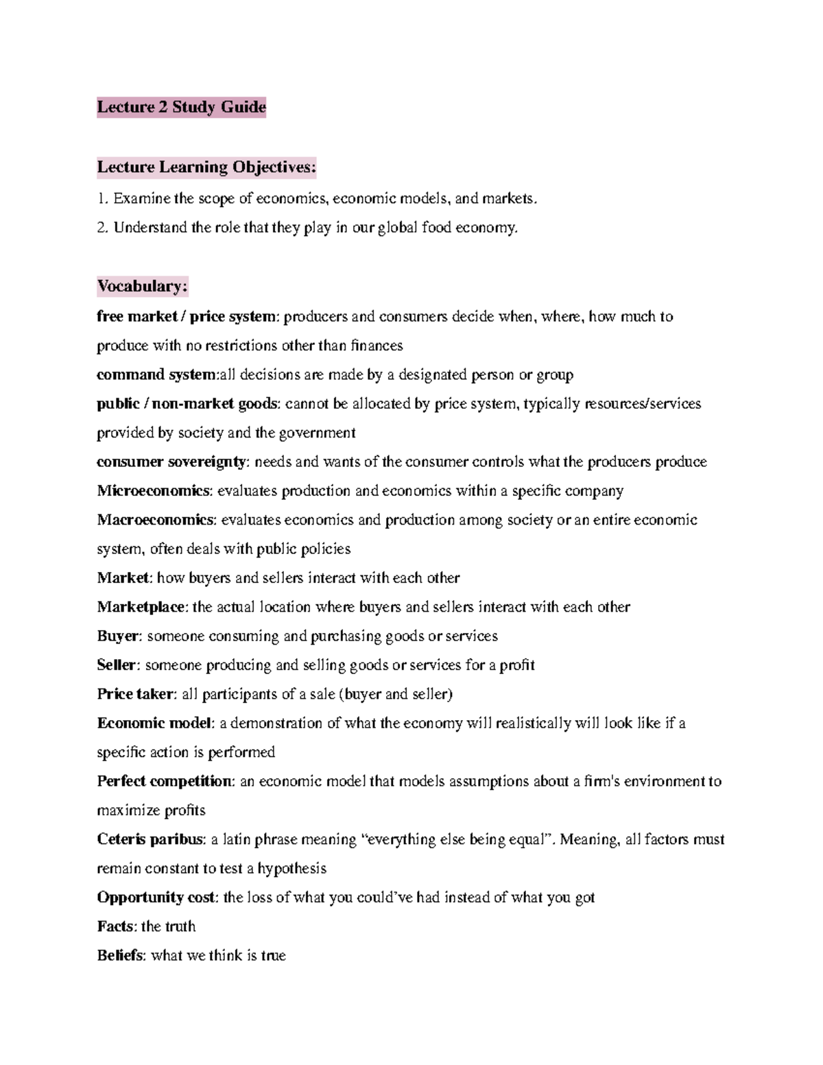 AREC150 The Global Economy of Food - Lecture 2 Study Guide - Lecture 2 ...