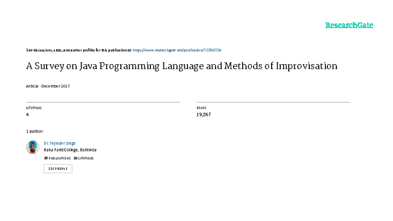 A Survey on Java Programming Language & Learning Methods (CS101) - Studocu