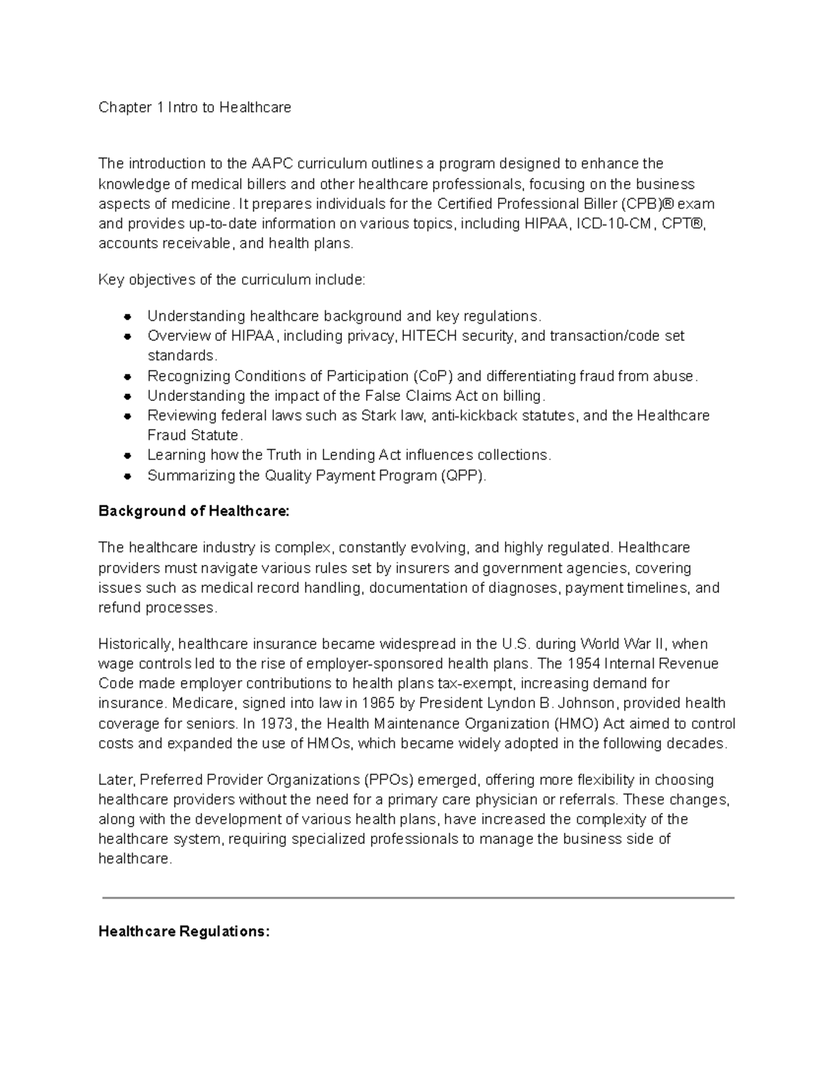 Chapter 1 Intro to Healthcare - Chapter 1 Intro to Healthcare The ...