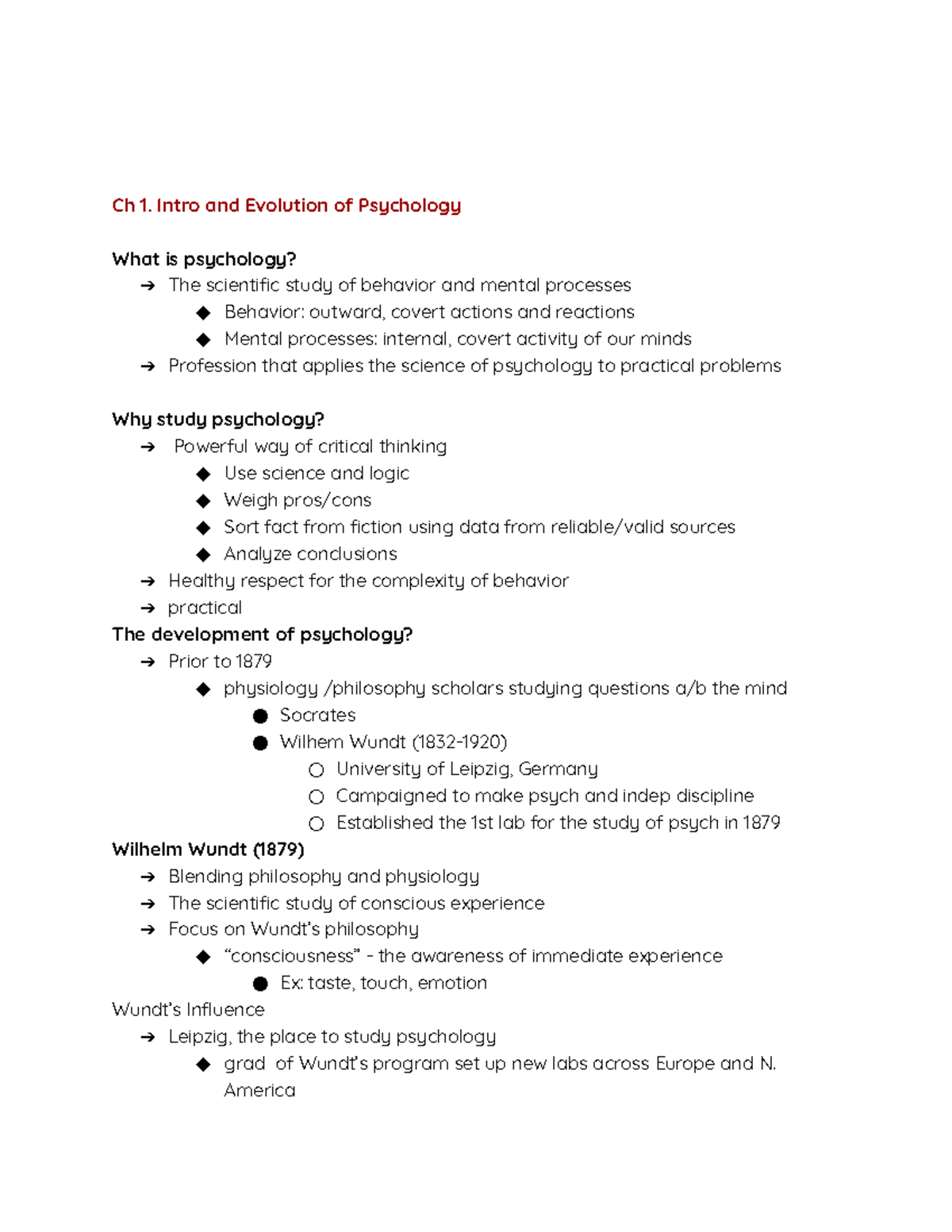 Chapter 1 Intro and Evolution of Psychology - Ch 1. Intro and Evolution ...