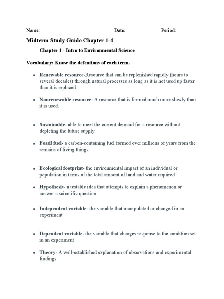 Midterm Study Guide Chapter 1-4: Chapter 1 - Intro To Environmental ...
