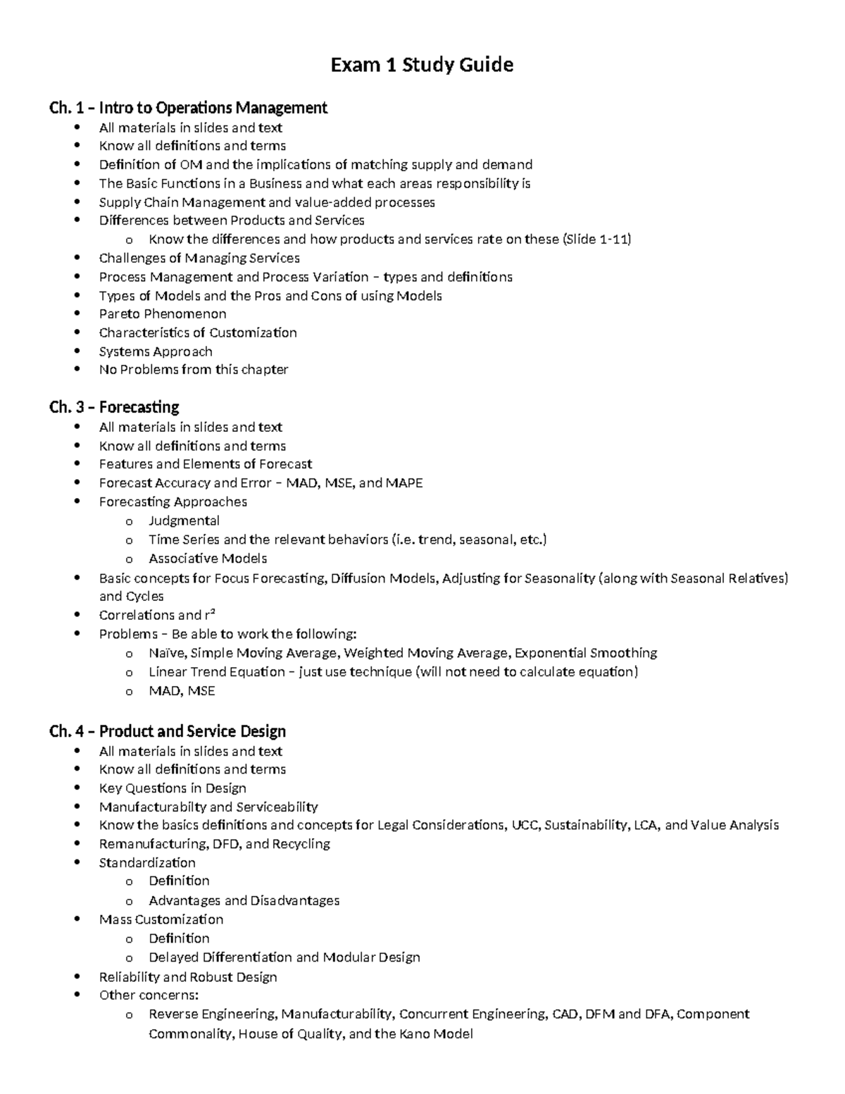 Final Exam Study Guide: Operations Management OP345 - Exam 1 Study ...