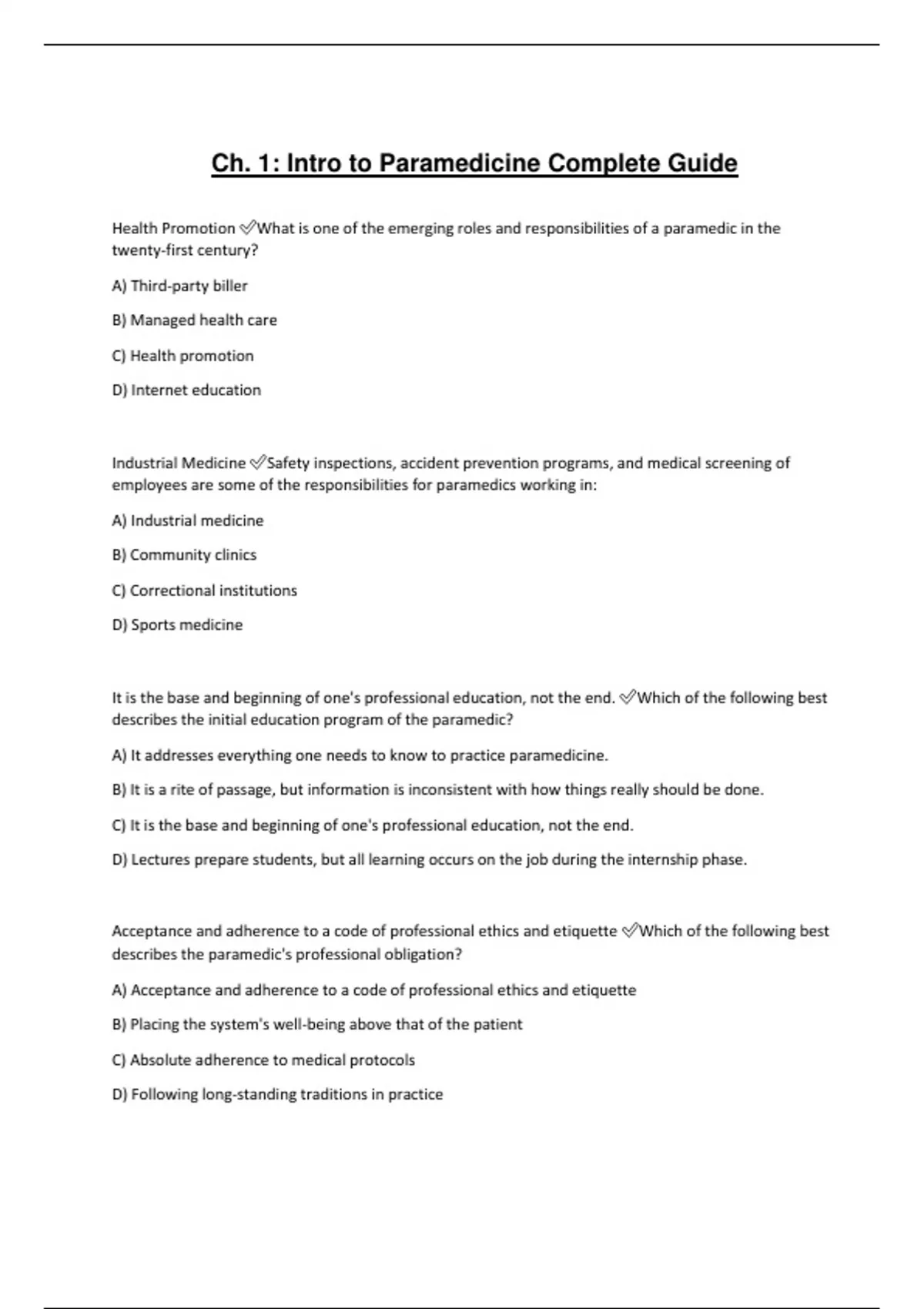 Ch. 1: Intro to Paramedicine Complete Guide - Ch. 1: Intro to ...