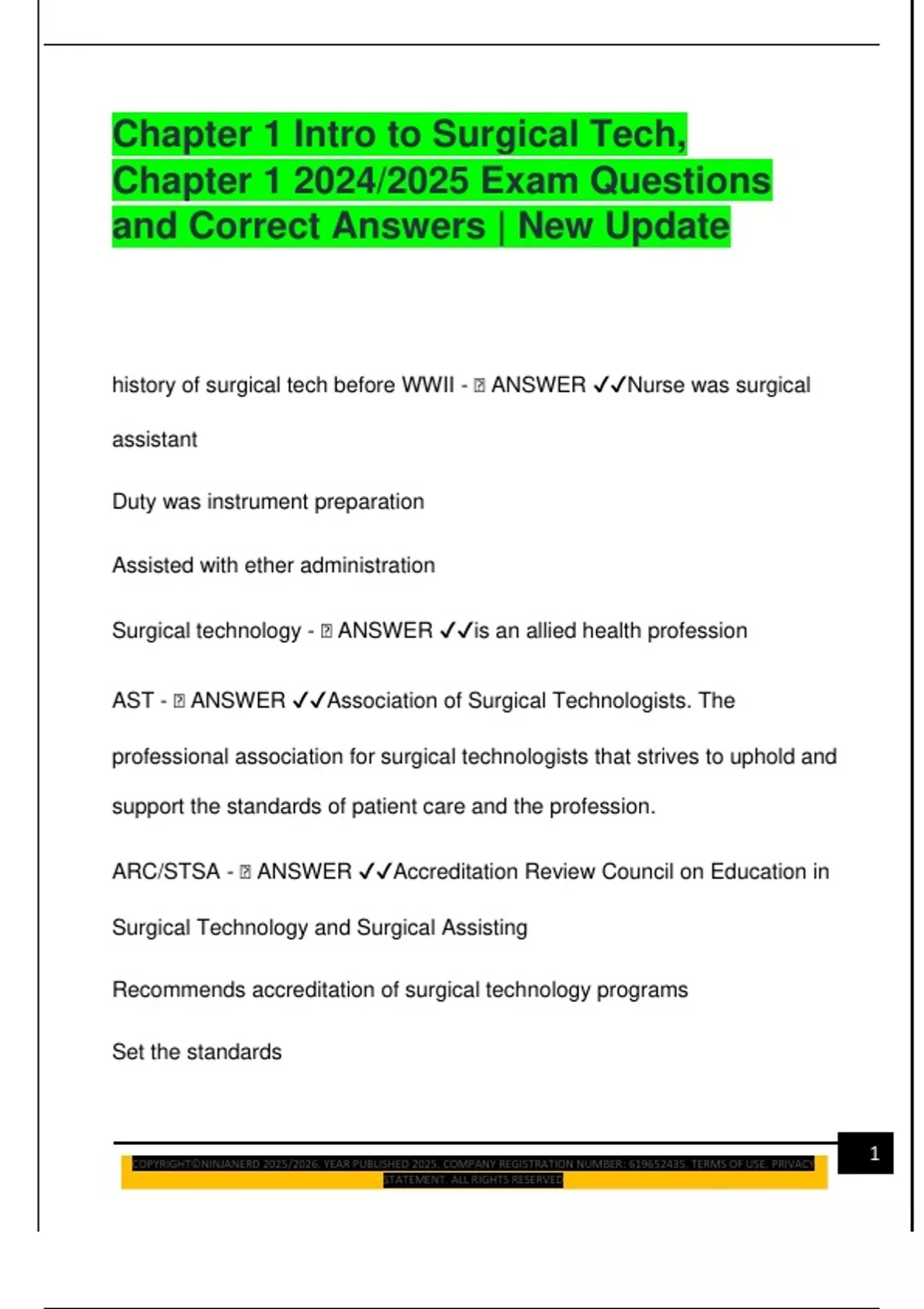 Chapter 1 Intro to Surgical Tech, Chapter 1 2024/2025 Exam Questions ...