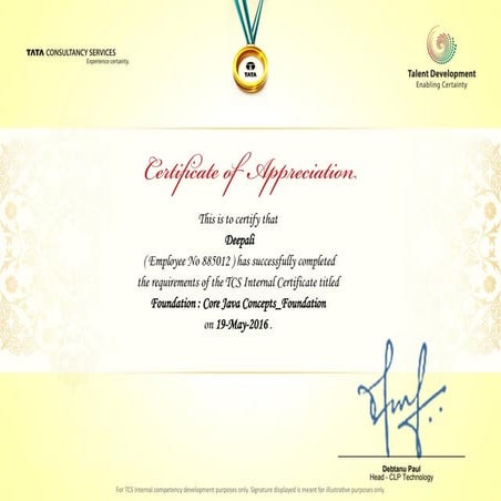885012_Foundation - Core Java Concepts_Foundation E-certficate | PDF