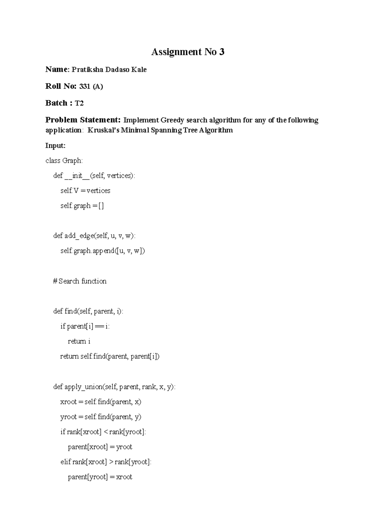 AI Assignment No 3: Greedy Search Algorithm Implementation - Studocu