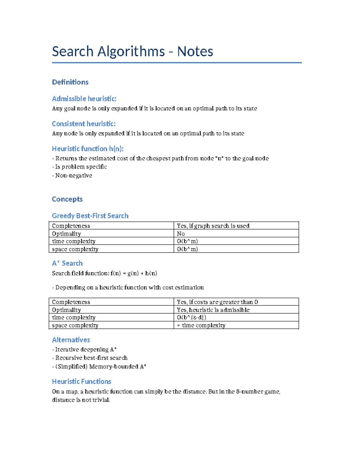 Search algorithms notes: definitions and concepts overview - Studocu