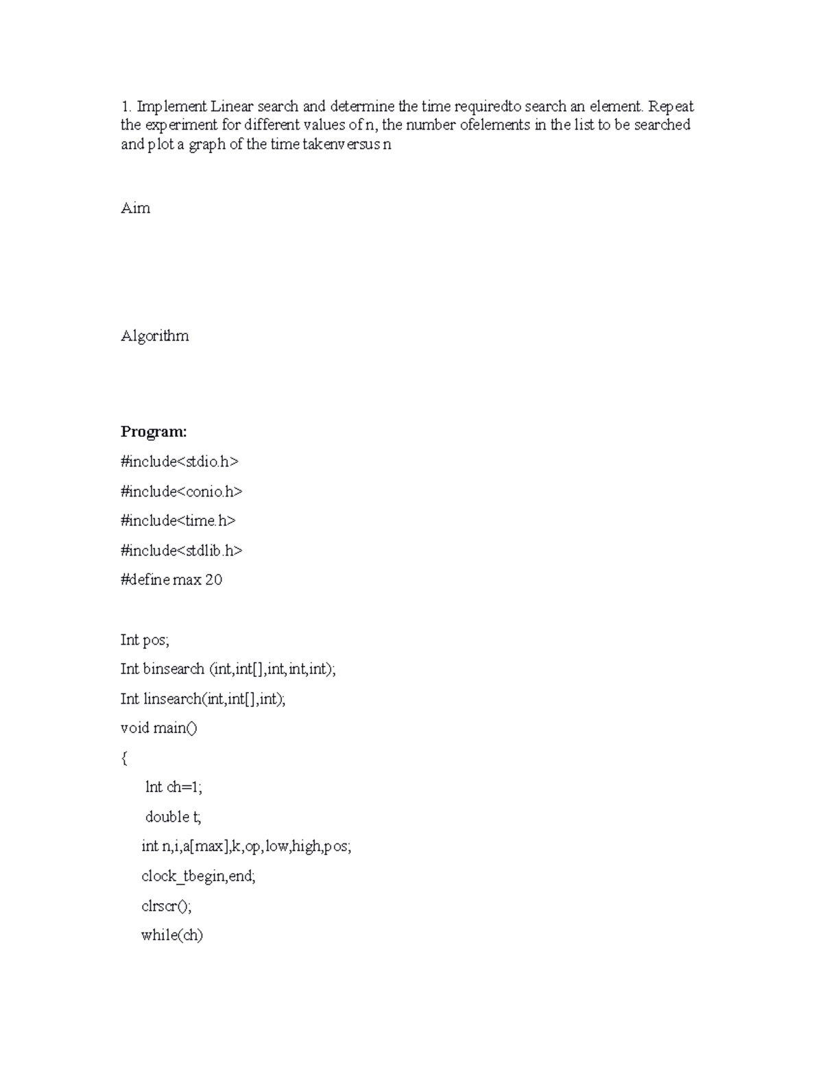 Alg lab - Implement Linear search and determine the time requiredto ...