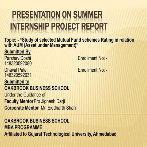 Summer Internship Project Report | PPTX | Mutual Funds | Personal Investing