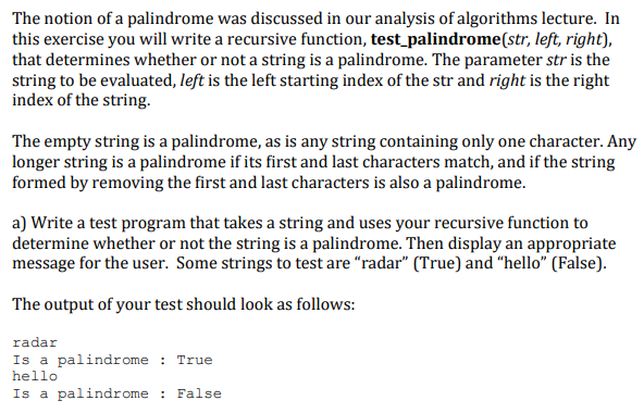 Solved The notion of a palindrome was discussed in our | Chegg.com