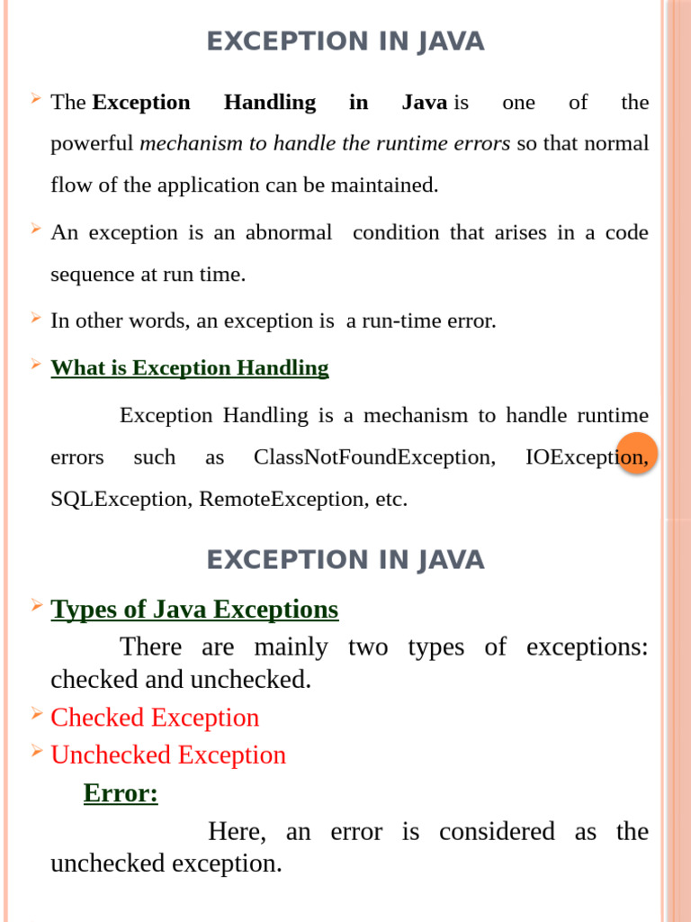 Java Exception Handling Overview | PDF | Java (Programming Language ...