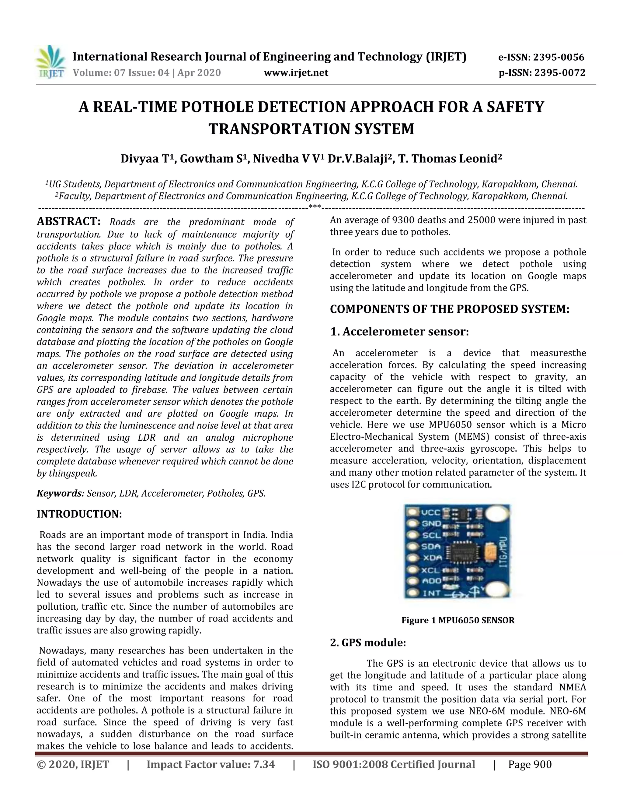 IRJET - A Real-Time Pothole Detection Approach for a Safety ...