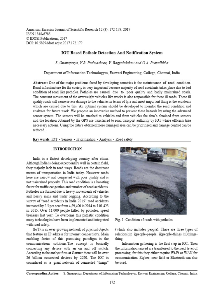 IOT Based Pothole Detection and Notification System: S. Gnanapriya, V.B ...
