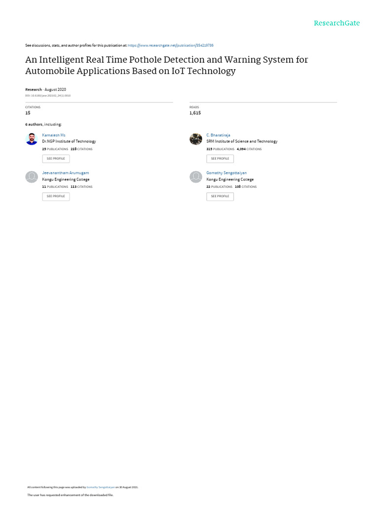 (PDF) Iot Based Real Time Potholes Detection System Using Image ...