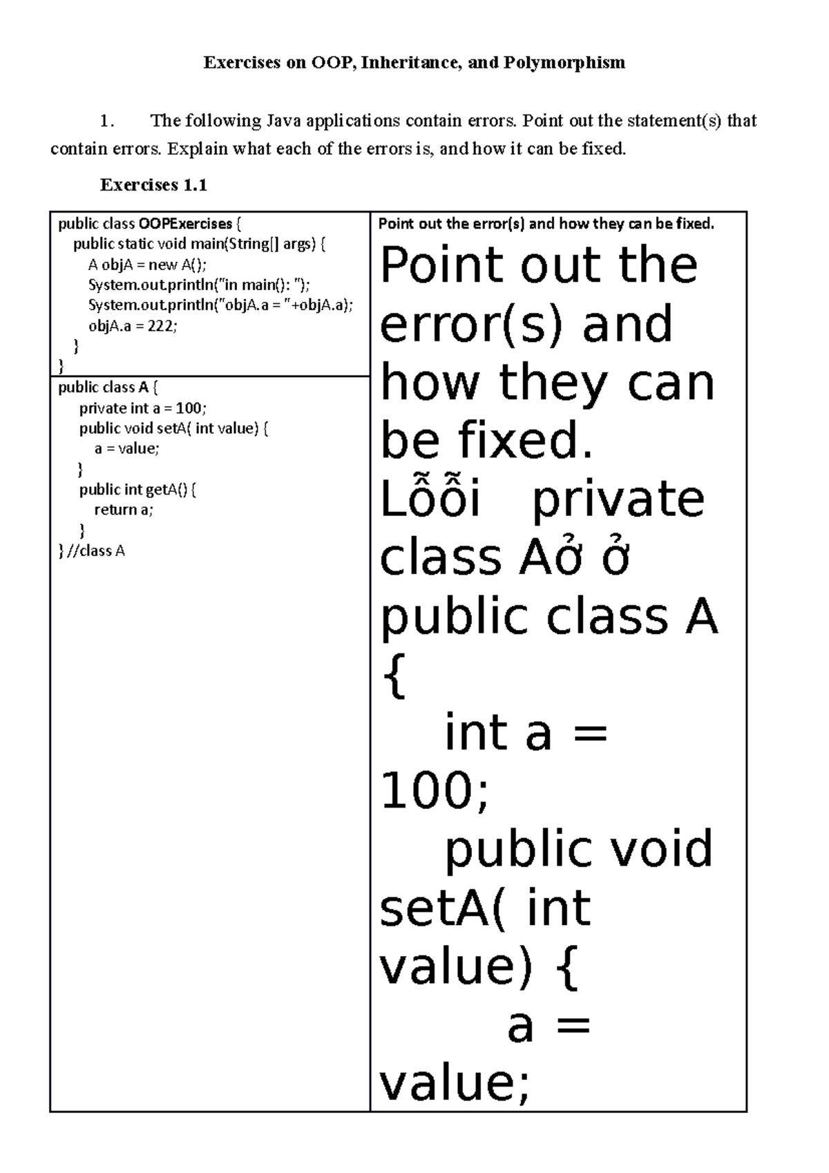 OOP Exercises and Problems - SE183436 Overview and Solutions - Studocu