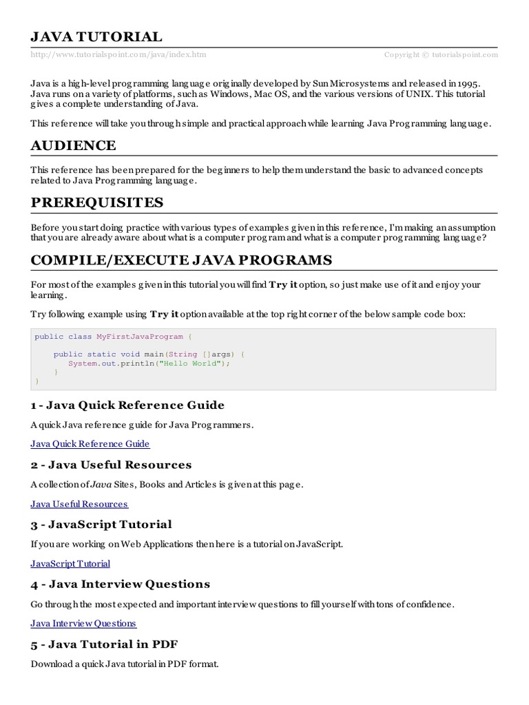 Java Tutorial: 1 - Java Quick Reference Guide | PDF