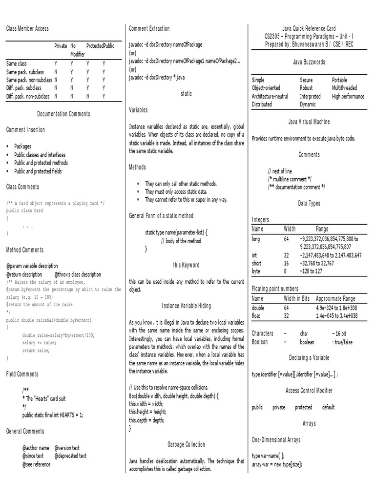 Java Cheat Sheet Pdf Java Cheat Sheets Pdf: 20 Useful One That Every