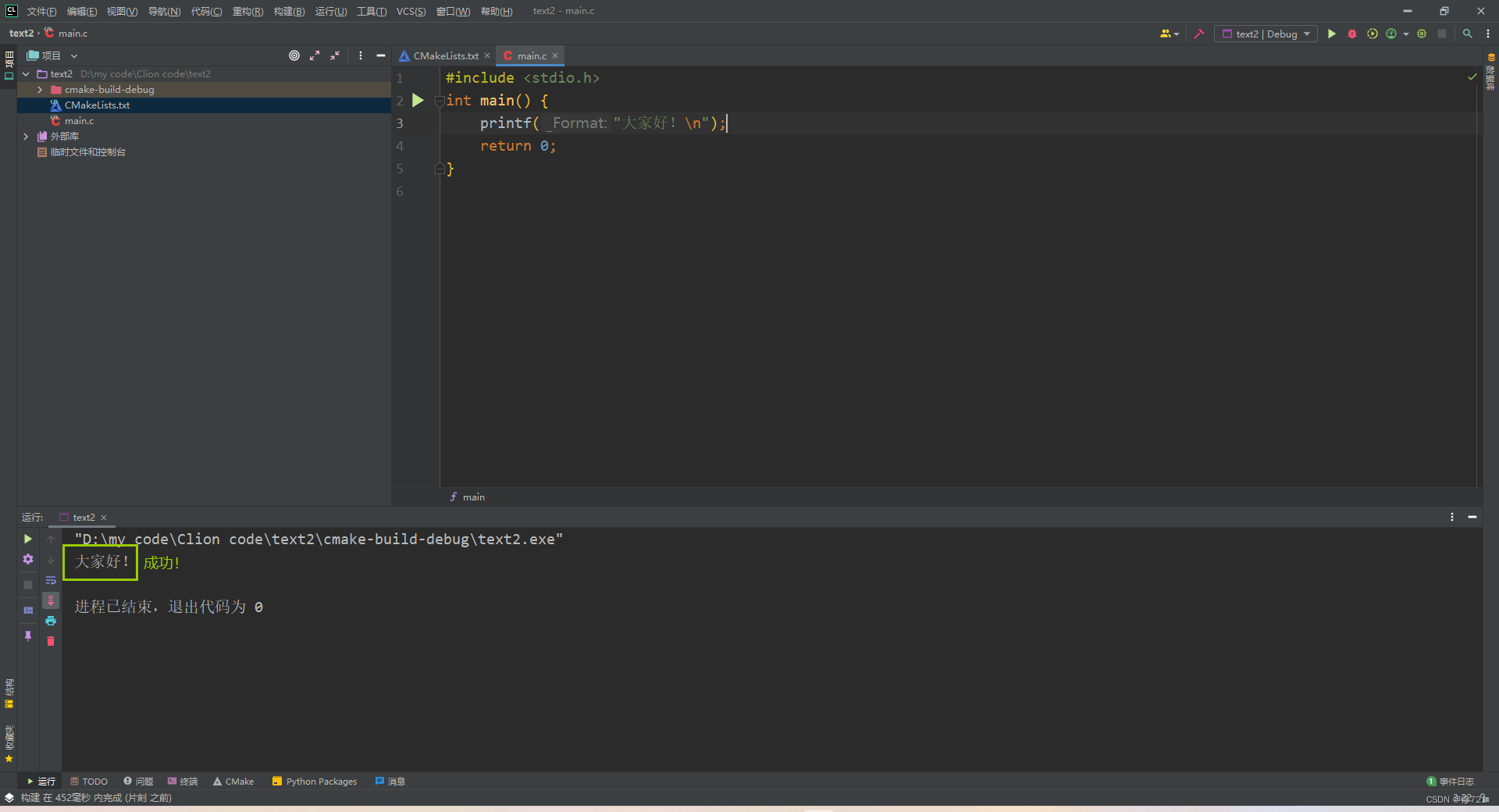 c语言之helloworld(CLion)_clion helloworld-CSDN博客