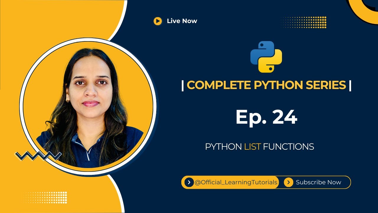 Complete Python Series Tutorial 24: Working with List Functions in ...