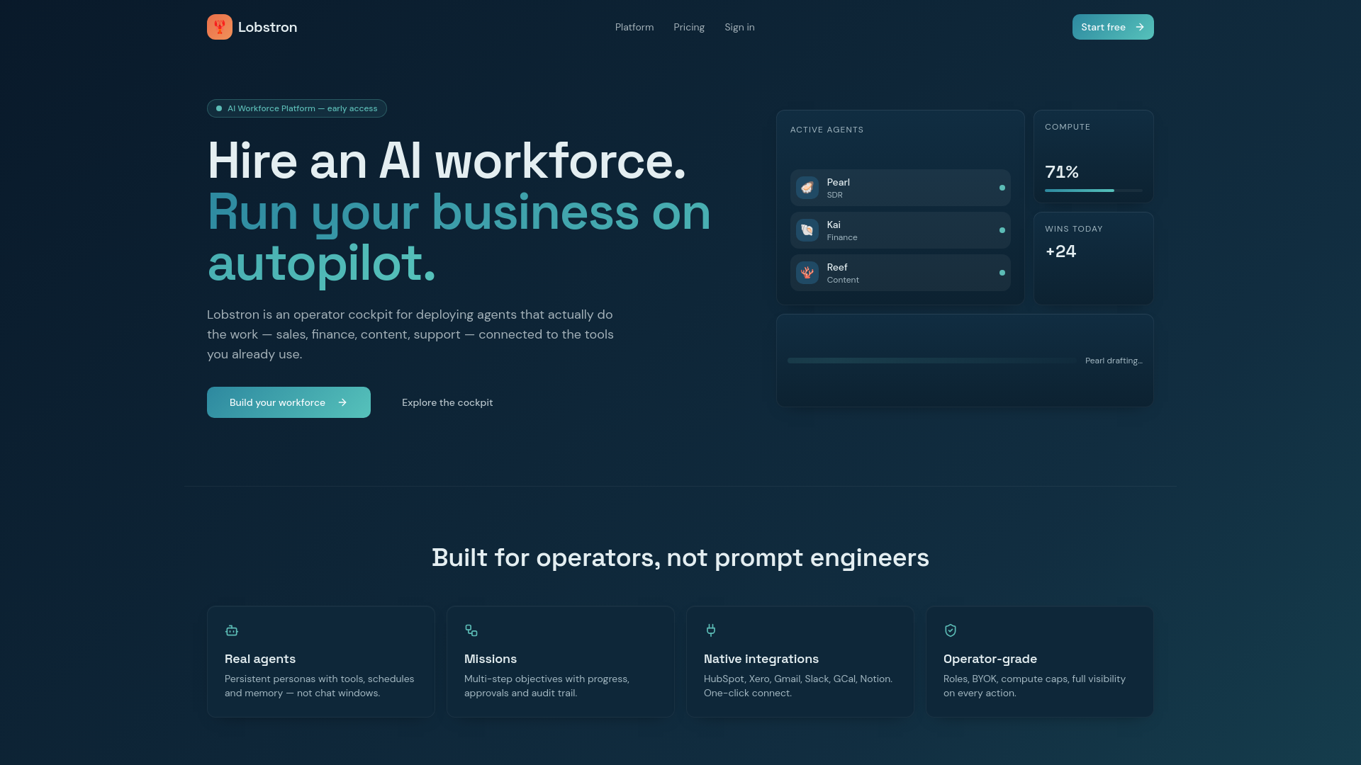 LOBSTRON — Hire an AI Agent Workforce | No-Code OpenClaw Platform