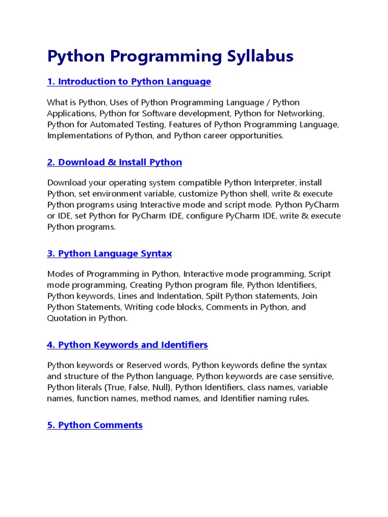 Python syllabus 2019 PDF Download - Python Syllabus Duration 45 Days ...