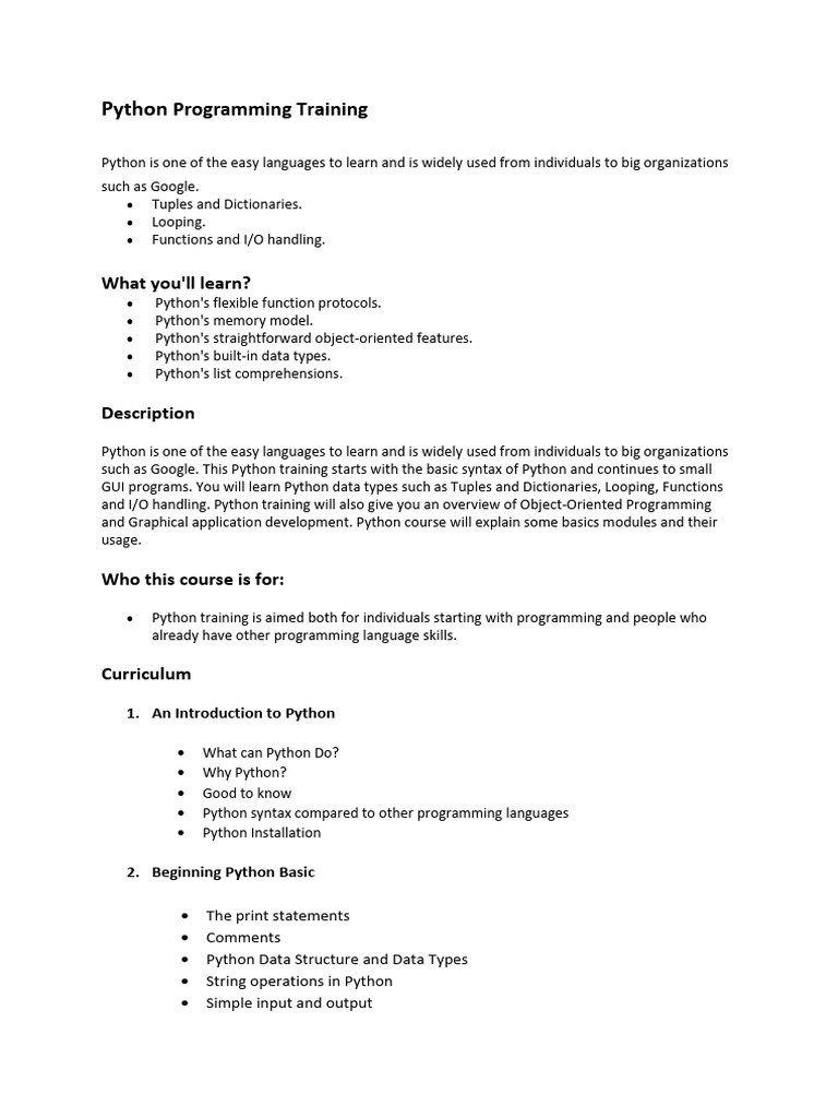 Based on this image's title: βBasic Python Syllabus For Training | PDFβ