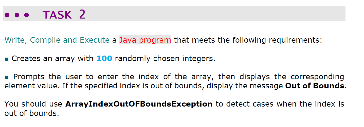 Solved TASK 3 Write, Compile and Execute a Java program that | Chegg.com